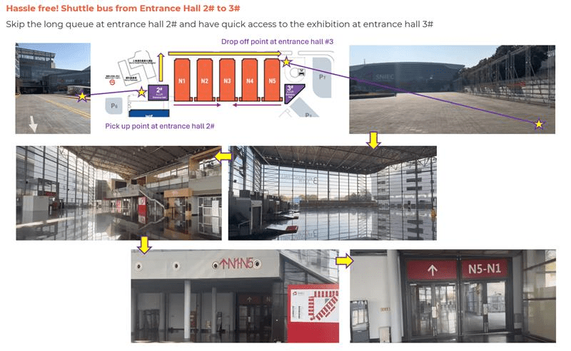 SNIEC has seven car parks, with P1, and P7 providing the easiest access to the exhibition halls N1 – N5.